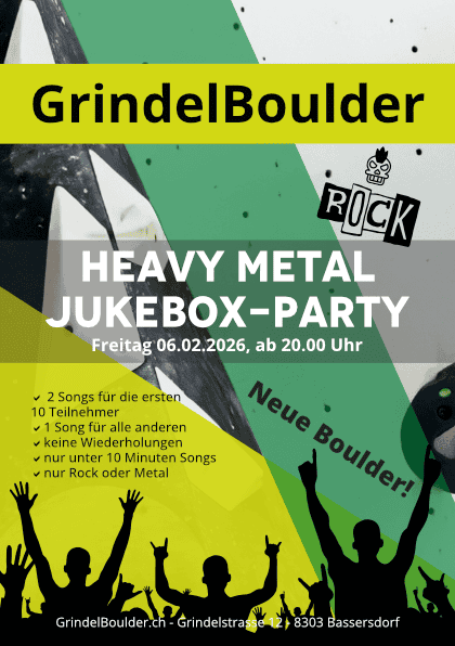 Es wird laut, energiegeladen und garantiert wieder unvergesslich: Am 6. Februar verwandeln wir das GrindelBoulder in eine echte Rock-Arena! Unsere Heavy Metal Jukebox-Party bringt euch eure Lieblingssongs direkt auf die Lautsprecher – hart, heavy und kompromisslos.